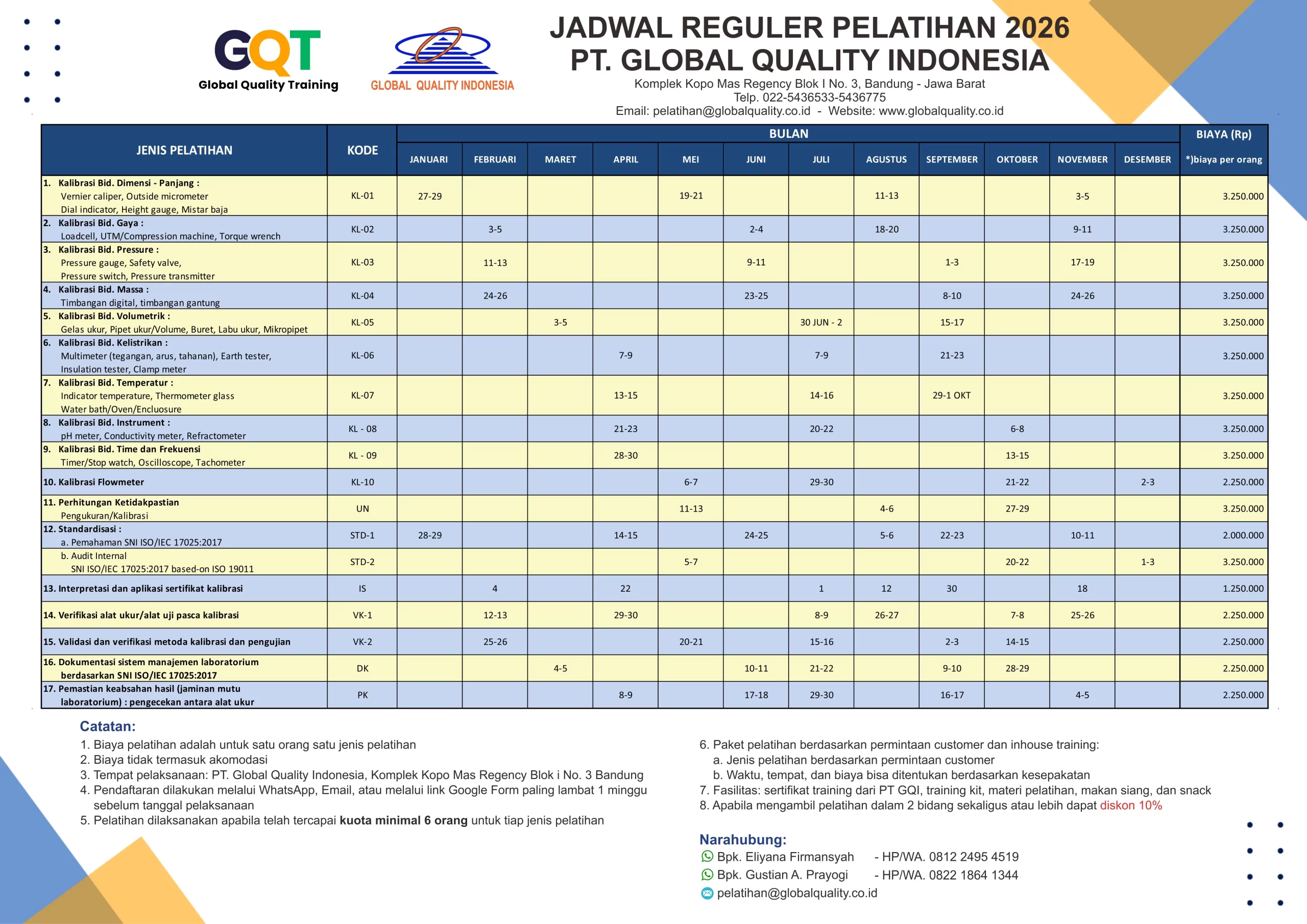 PT. Global Quality Indonesia offers accredited calibration, material testing, training, and quality management consulting. We help enhance your business efficiency, reliability, and productivity!
